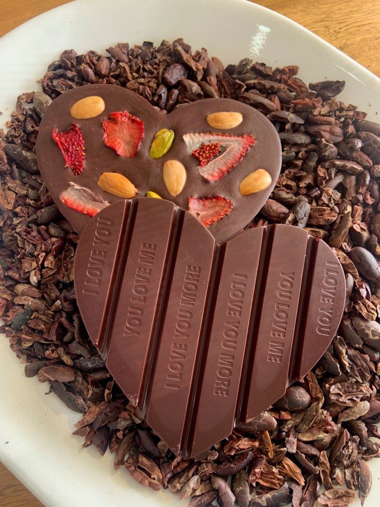 Nuestra manera preferida es hacer turrones de chocolate sin azúcar con frutos secos como almendras tostadas. El chocolate artesanal tiene la capacidad de absorber aromas y sabores de las frutas y las nueces tostadas, dándole otra dimensión en boca que exalta el perfil del chocolate, su origen y porcentaje de cacao.